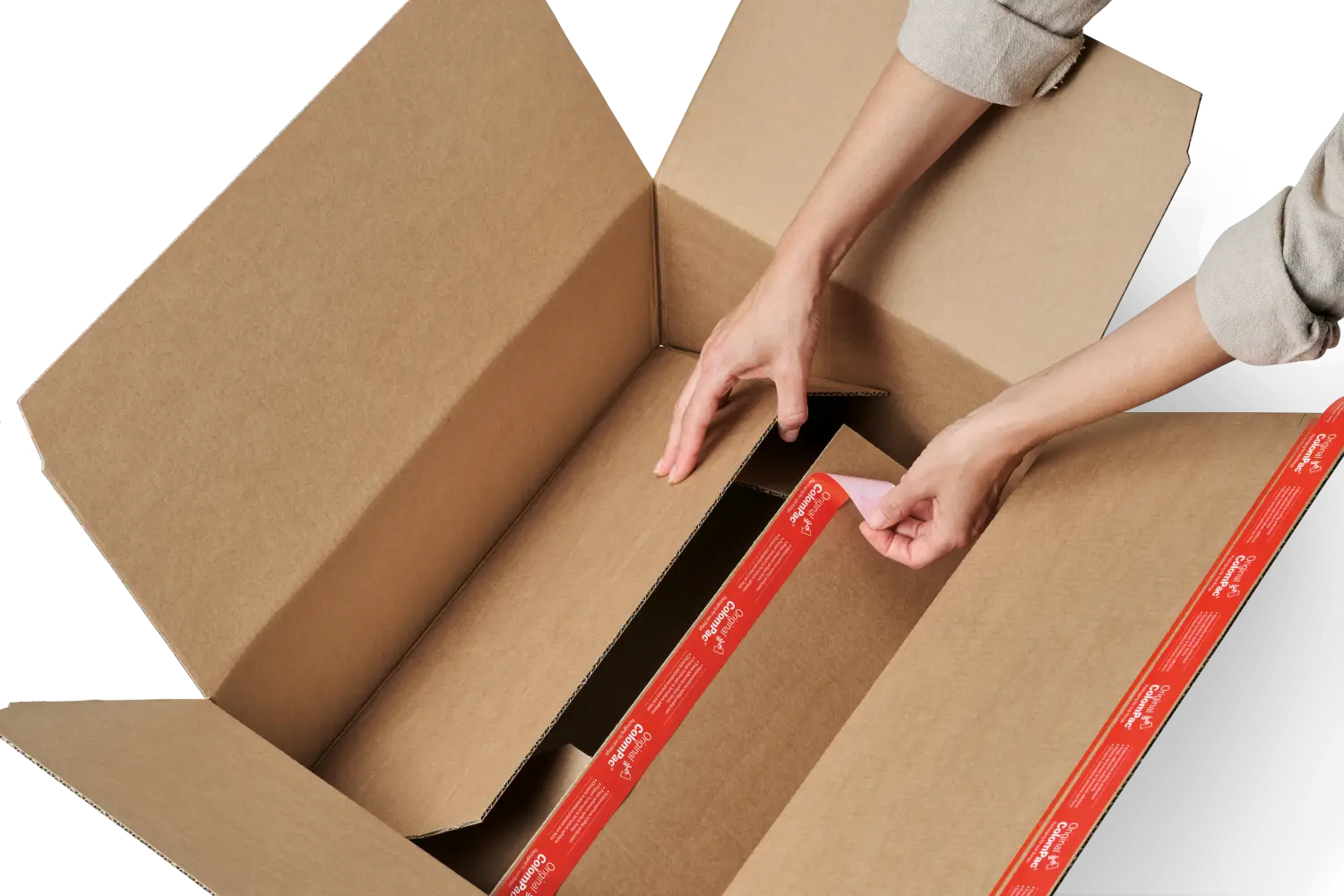 Pensé pour une fermeture ultra sécurisée, le CP 159 est équipé de deux bandes autocollantes ColomPac® (dessus et fond) et d’une bande d’arrachage intégrée pour une ouverture facile et propre, sans outil.