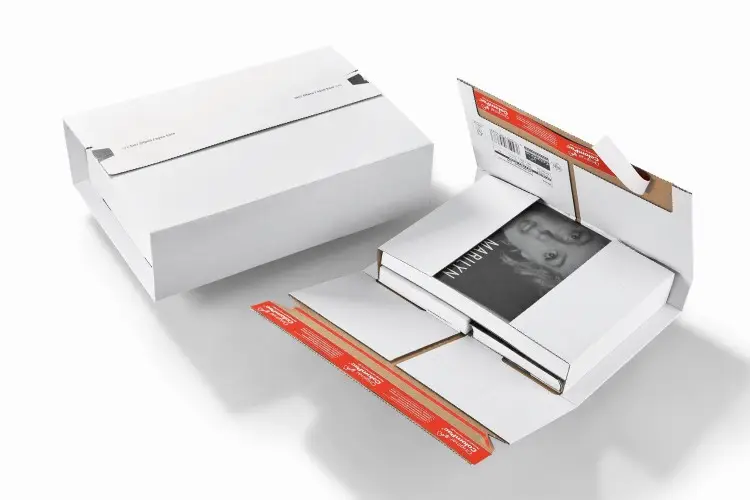 📦 Type de produit : Étui carton blanc haute sécurité, expédition produits plats et fragiles